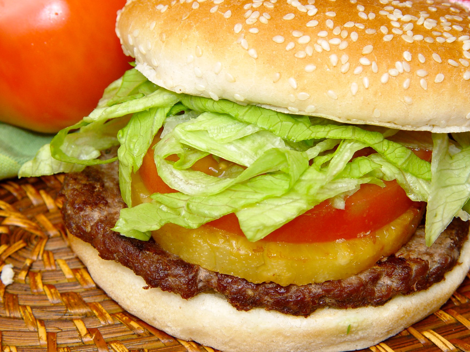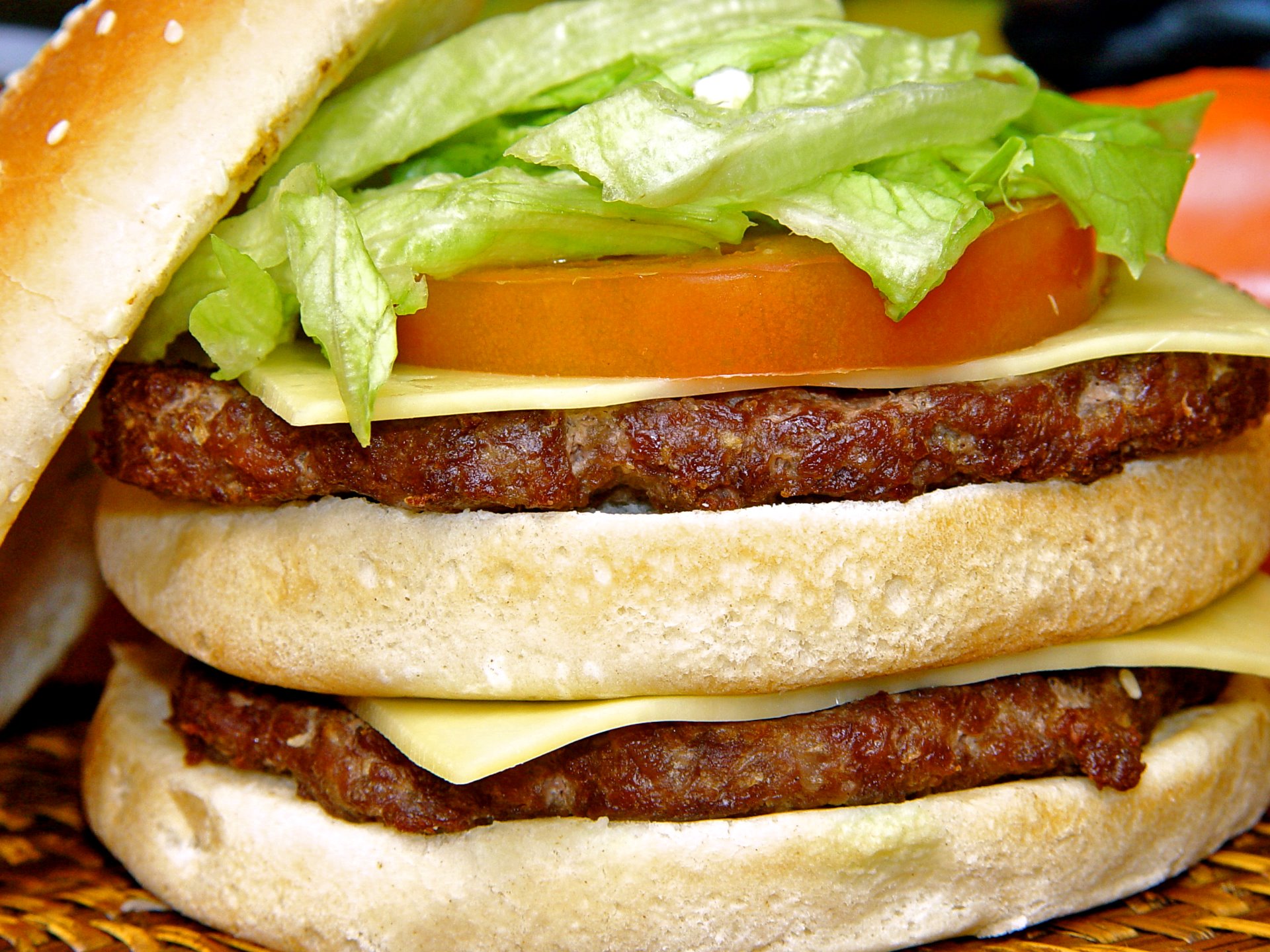 Hamburguesa doble; doble de queso, tomate natural, cebolla, col rayada con zanahoria o escarola ( a elegir). 4,20€