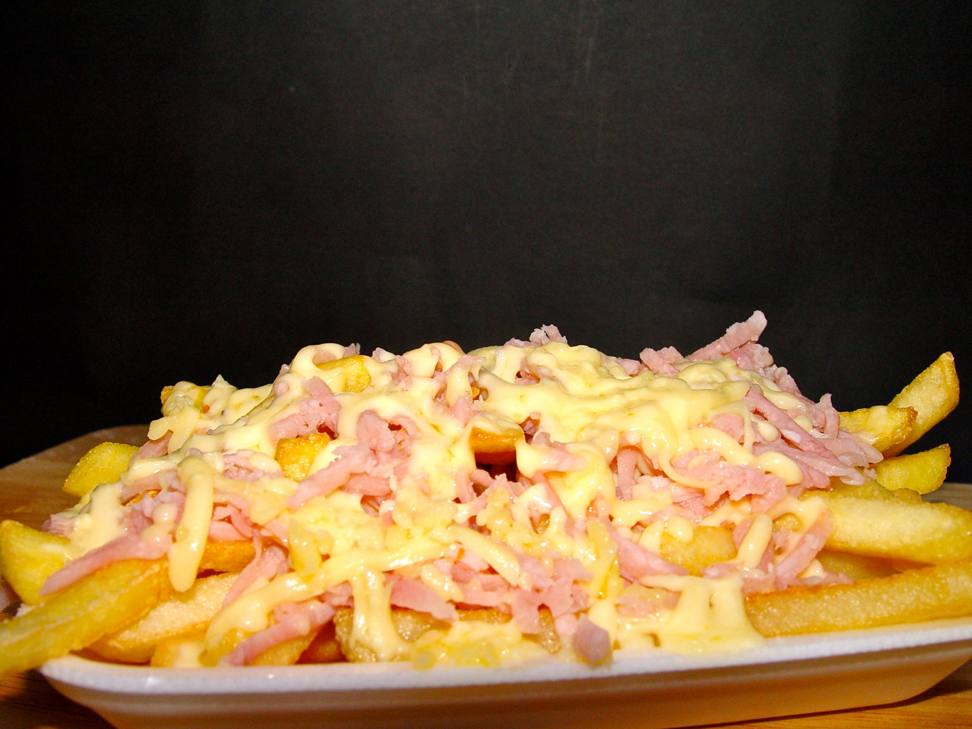 Papas + jamón y queso fundido; deliciosas papas con queso fundido + tiras de jamón york 4,95€